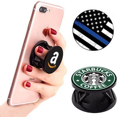 This smartphone grip attaches to any phone or case to give secure one-handed control and extended thumb reach. The grip features peel-n-stick, removable, no-residue adhesive. The grip is also full-color, so you can get creative with your branding!